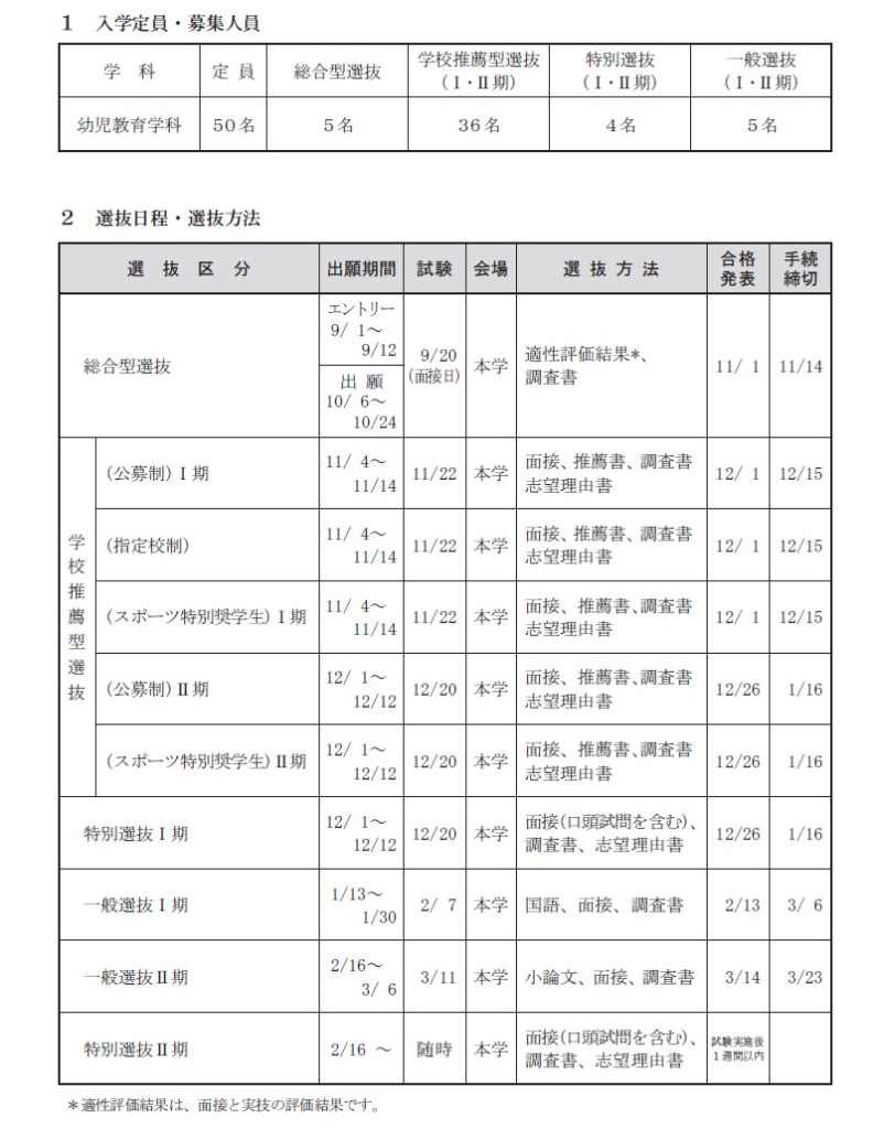学校推薦型選抜(スポーツ特別奨学生)Ⅰ期・Ⅱ期